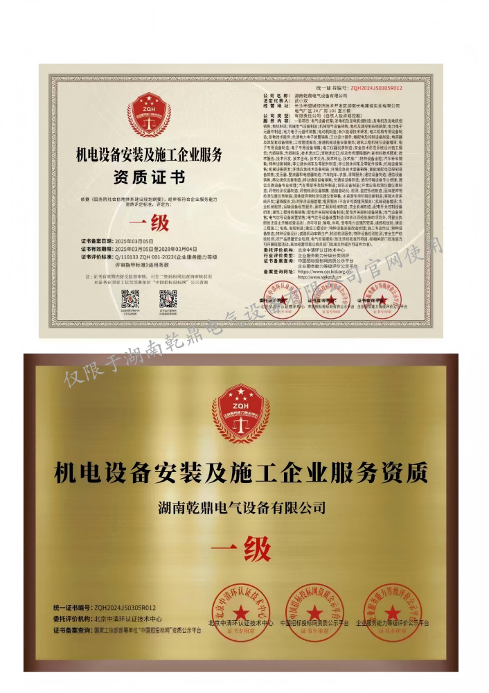机电设备安装及施工企业一级服务资质
